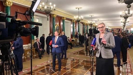 當天上午,在前往克里姆林宮之前,習主席在俄羅斯聯(lián)邦政府大廈會見了俄羅斯總理米舒斯京。米舒斯京總理率俄羅斯政府幾乎所有重要內(nèi)閣成員一起同習主席會見,其中包括俄羅斯聯(lián)邦政府7位副總理,他們對習主席的訪問表示熱烈歡迎。