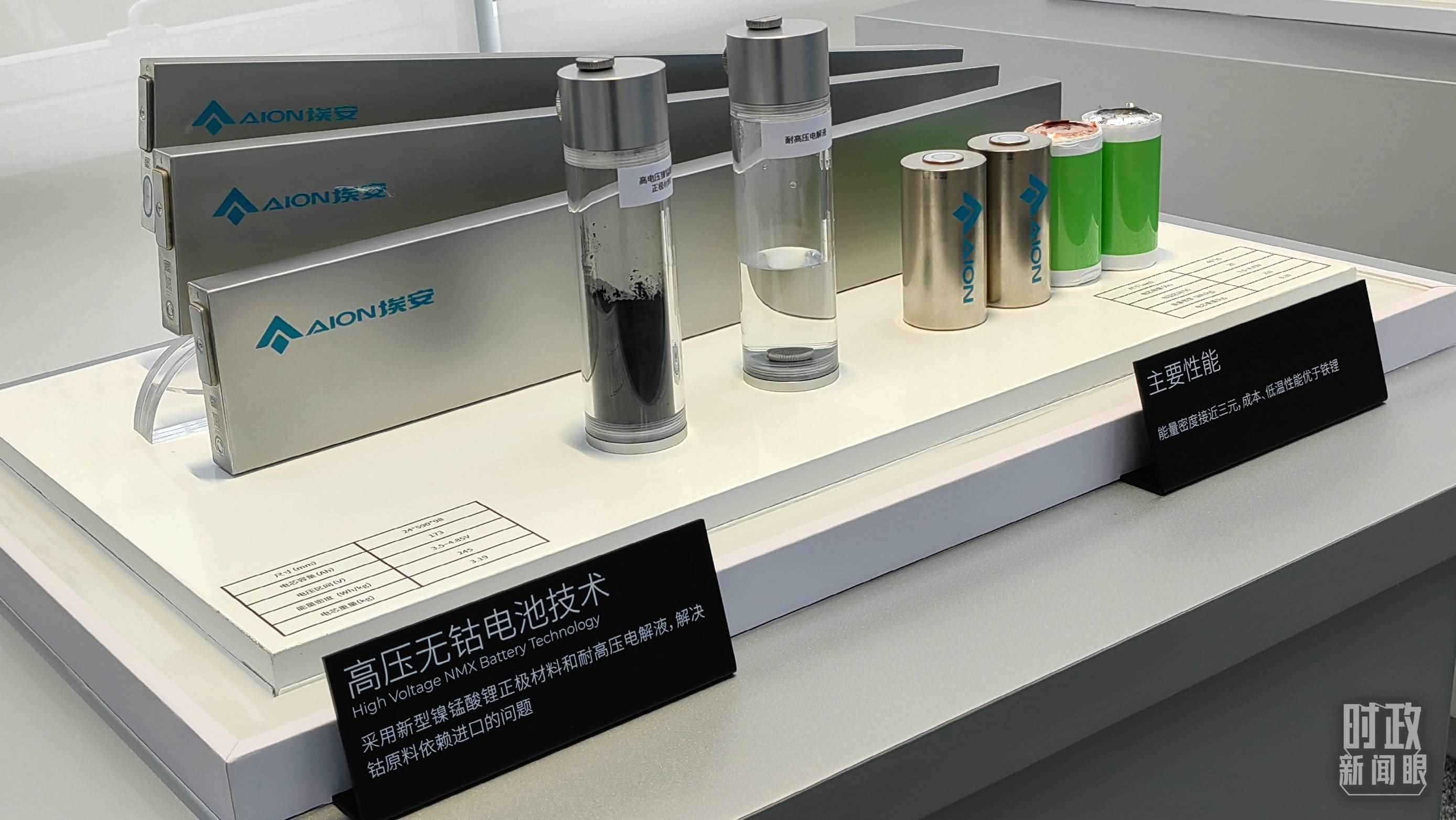 △廣汽埃安展示的高壓無(wú)鈷電池技術(shù),采用新型鎳錳酸鋰正極材料和耐高壓電解液,解決了鈷原料依賴進(jìn)口的問(wèn)題。(總臺(tái)央視記者張曉鵬拍攝)