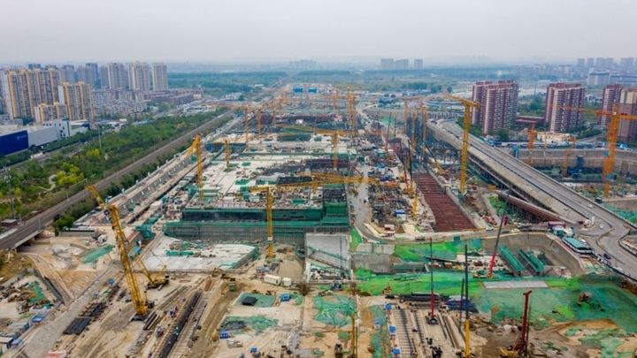 這是在北京市通州區(qū)拍攝的建設(shè)中的北京城市副中心站綜合交通樞紐(2023年4月23日攝,無人機照片)。新華社發(fā)(北京城建集團供圖)