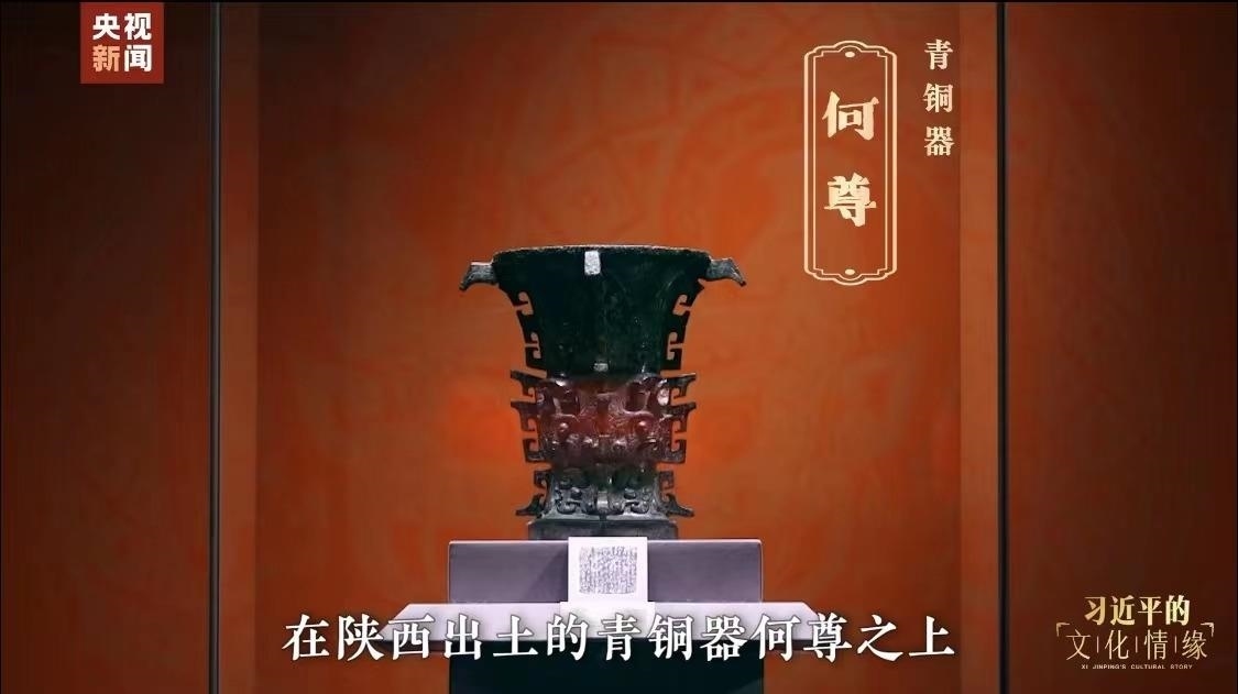在贈送中亞國家元首的禮品中有一件“何尊”。西周何尊銘文“宅茲中國”,是“中國”一詞迄今發(fā)現(xiàn)的最早來源。