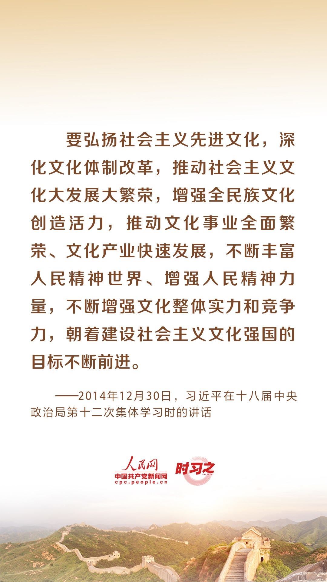 “理論自覺(jué)、文化自信,是一個(gè)民族進(jìn)步的力量;價(jià)值先進(jìn)、思想解放,是一個(gè)社會(huì)活力的來(lái)源。”黨的十八大以來(lái),習(xí)近平總書記就文化建設(shè)提出了一系列新理念新思想新戰(zhàn)略,引領(lǐng)中華文化創(chuàng)造性轉(zhuǎn)化、創(chuàng)新性發(fā)展。推動(dòng)弘揚(yáng)和發(fā)展社會(huì)主義先進(jìn)文化,習(xí)近平多次作出重要闡釋。