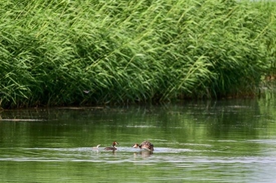 6月5日,水鳥(niǎo)在烏梁素海水面上嬉戲。新華社記者 連振 攝