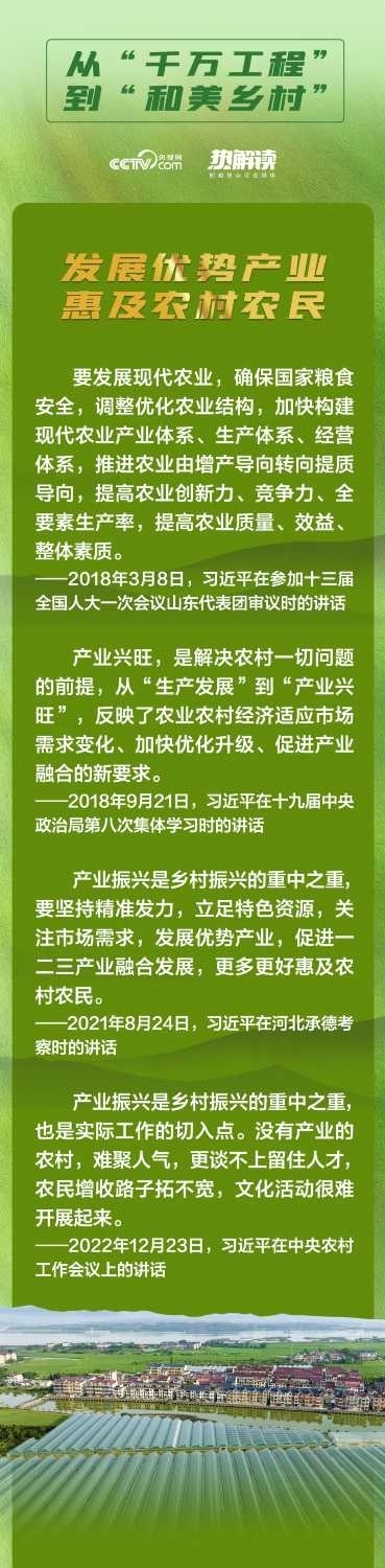 央視網(wǎng)《熱解讀》欄目特別策劃“從‘千萬工程’到‘和美鄉(xiāng)村’”系列解讀文章,緊扣鄉(xiāng)村振興戰(zhàn)略“產(chǎn)業(yè)興旺、生態(tài)宜居、鄉(xiāng)風(fēng)文明、治理有效、生活富?!笨傄螅嬲宫F(xiàn)新時代中國多措并舉建設(shè)宜居宜業(yè)和美鄉(xiāng)村的生動實踐。