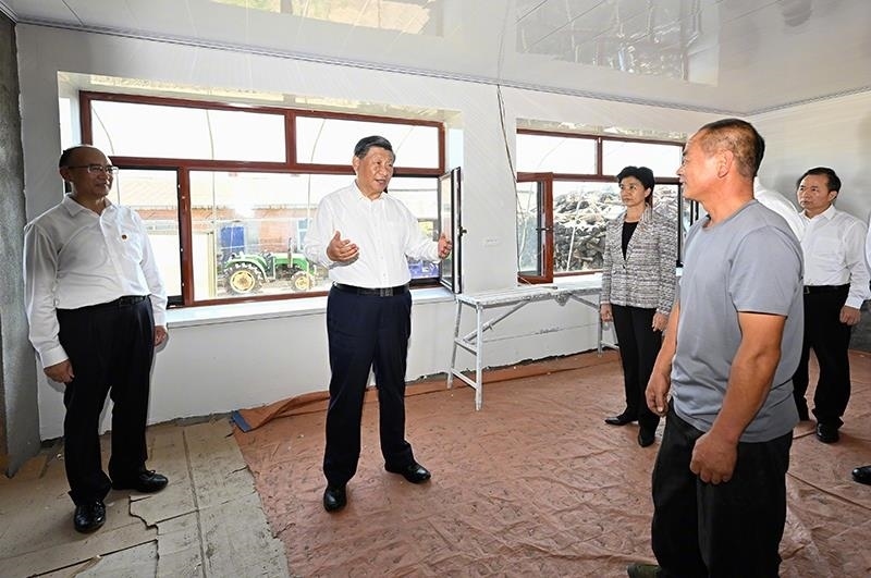△9月7日,習(xí)近平總書記在黑龍江尚志市老街基鄉(xiāng)龍王廟村看望慰問受災(zāi)群眾。