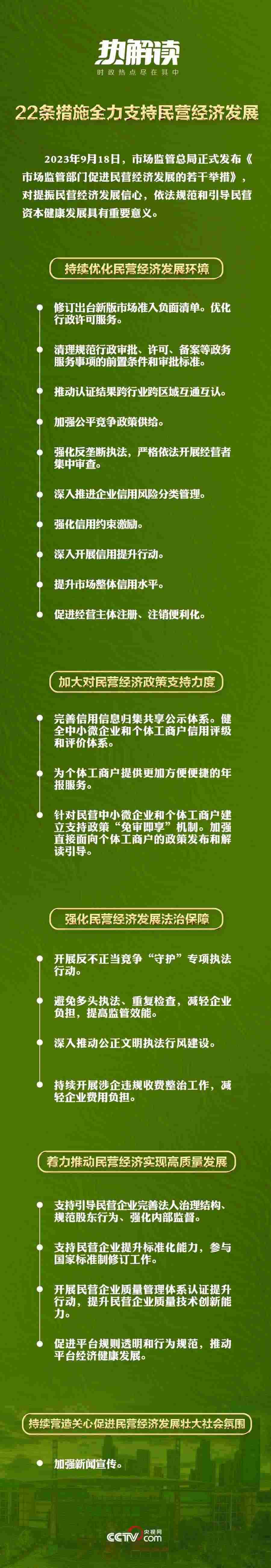2023年7月14日,中共中央國(guó)務(wù)院出臺(tái)《關(guān)于促進(jìn)民營(yíng)經(jīng)濟(jì)發(fā)展壯大的意見》,對(duì)促進(jìn)民營(yíng)經(jīng)濟(jì)發(fā)展壯大作出新的重大部署。2023年9月18日,市場(chǎng)監(jiān)管總局發(fā)布《市場(chǎng)監(jiān)管部門促進(jìn)民營(yíng)經(jīng)濟(jì)發(fā)展的若干舉措》,通過22條措施為全力支持民營(yíng)經(jīng)濟(jì)發(fā)展設(shè)計(jì)了具體落實(shí)的“施工圖”。