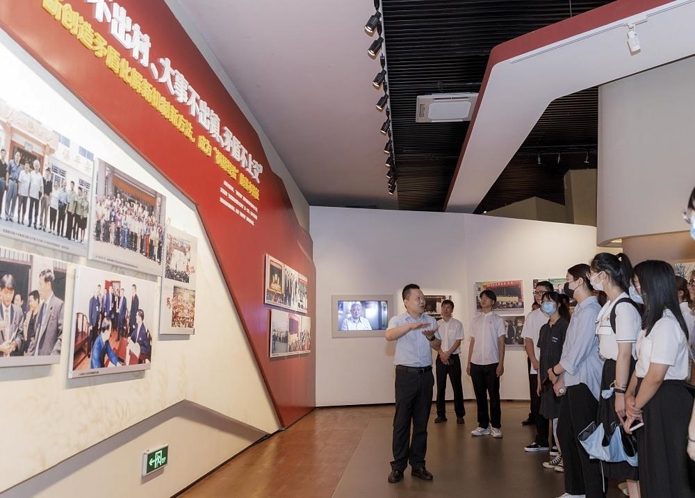 青年學子在浙江省諸暨市楓橋鎮(zhèn)的楓橋經(jīng)驗陳列館參觀學習(2022年8月25日攝)。新華社記者 徐昱 攝