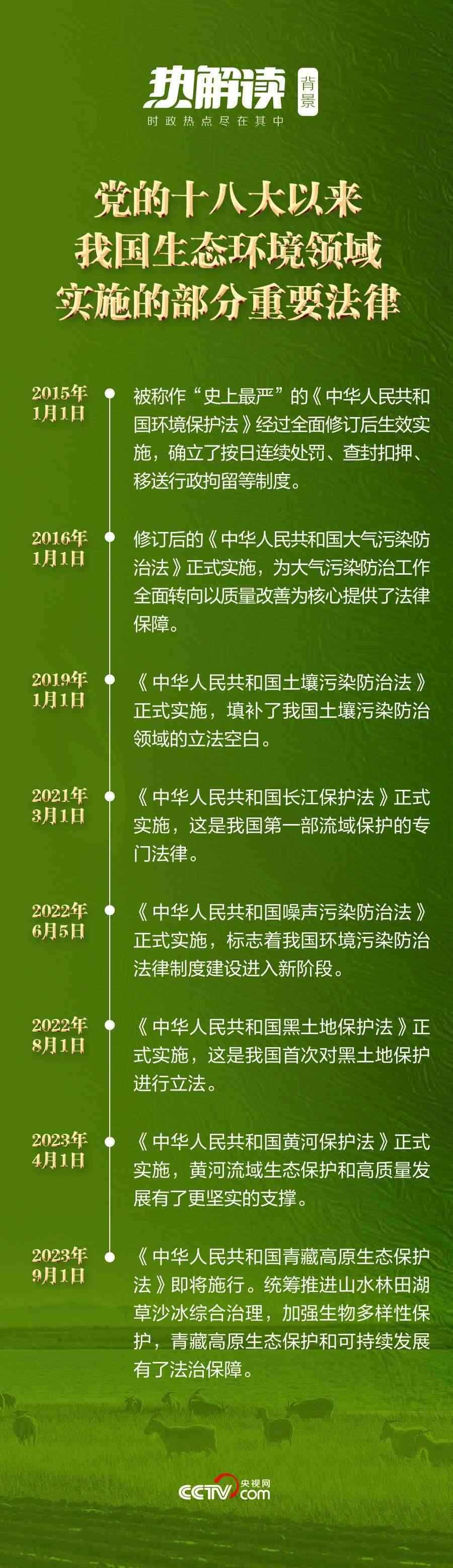 黨的十八大以來,越織越密的生態(tài)文明制度體系成為生態(tài)文明建設的有力保障。將“生態(tài)文明建設”寫入憲法,制定和修改長江保護法、土地管理法、森林法等,我國生態(tài)環(huán)境立法實現(xiàn)了從量到質的全面提升。