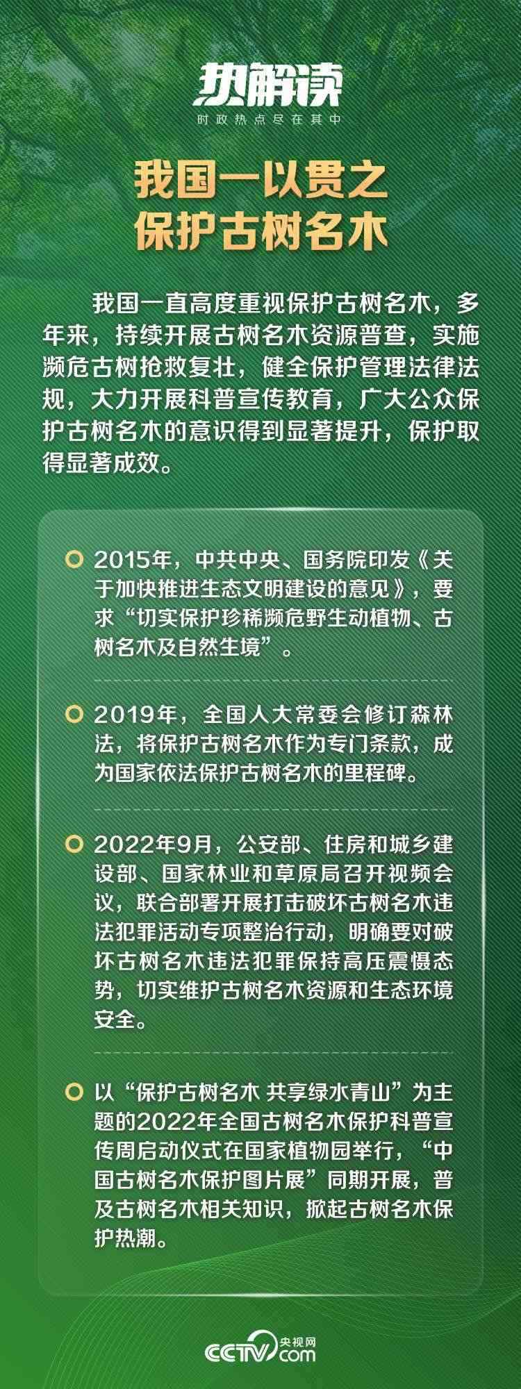 黨的十八大以來,以習近平同志為核心的黨中央高度重視古樹名木保護工作。