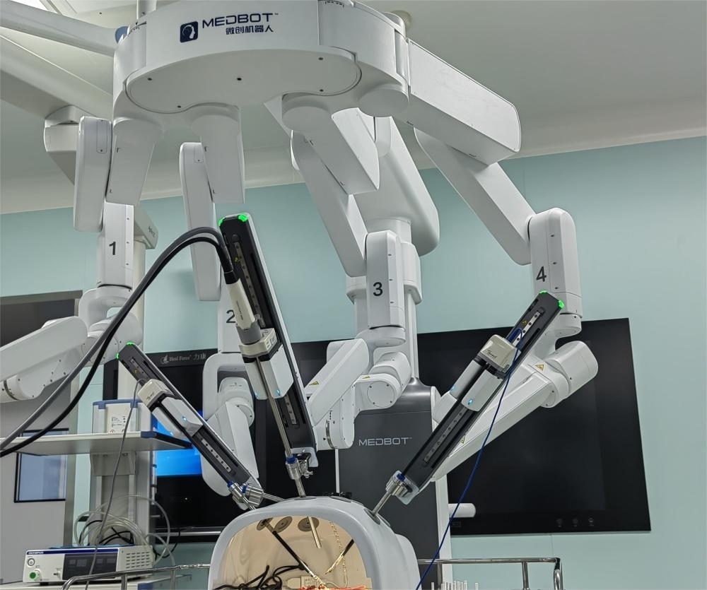 患子宮肌瘤合并貧血的王女士近日在銀川一家醫(yī)院接受了全子宮切除微創(chuàng)手術(shù)。解剖、分離、切割、縫合等各項(xiàng)精細(xì)手術(shù)動作都由機(jī)器人的4條機(jī)械臂操作。