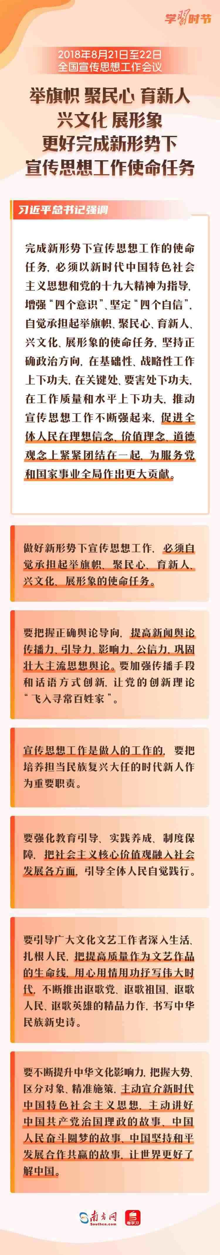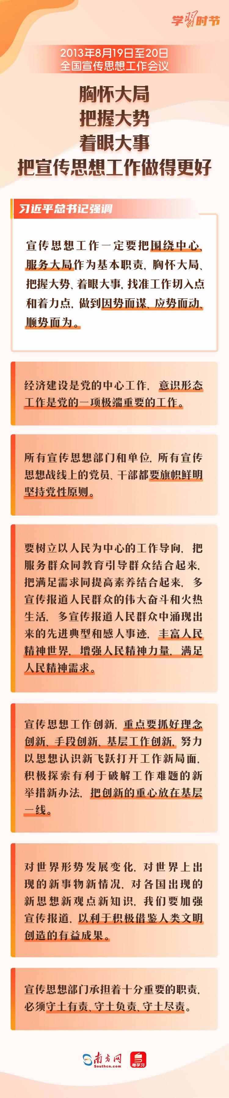 宣傳思想文化工作事關(guān)黨的前途命運,事關(guān)國家長治久安,事關(guān)民族凝聚力和向心力,是一項極端重要的工作。黨的十八大以來,宣傳思想文化工作之所以取得歷史性成就,最根本就在于有習(xí)近平總書記領(lǐng)航掌舵,有習(xí)近平新時代中國特色社會主義思想科學(xué)指引。讓我們一同回顧剛剛召開的全國宣傳思想文化工作會議,以及2018年、2013年召開的兩次全國宣傳思想工作會議,看看總書記通過這三次會議,為宣傳思想文化工作劃出了哪些重點。