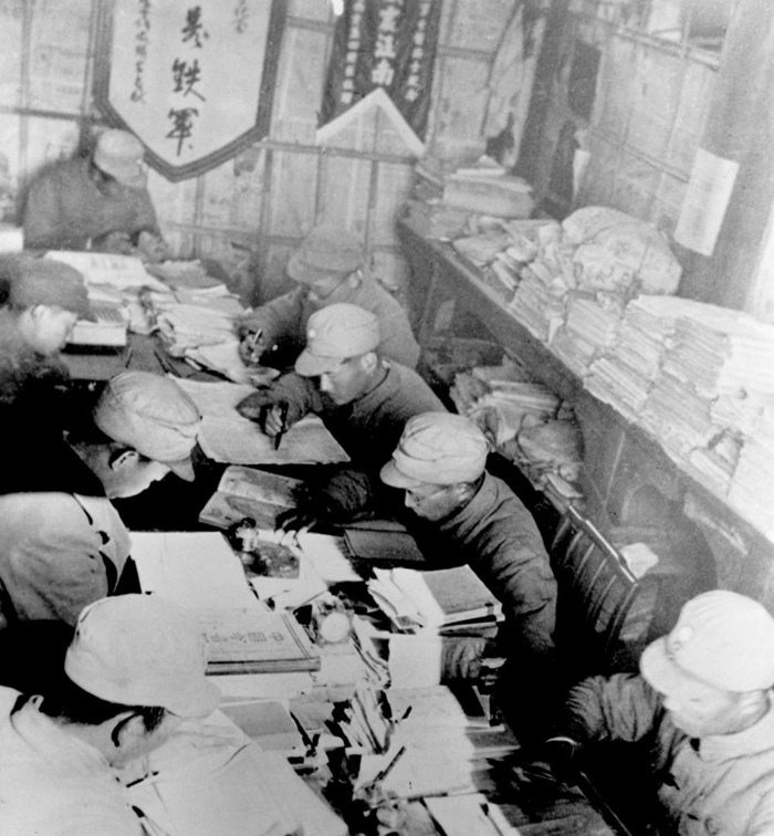 ↑ 抗日戰(zhàn)爭期間,新四軍在蘇北冰天雪地中行進。
