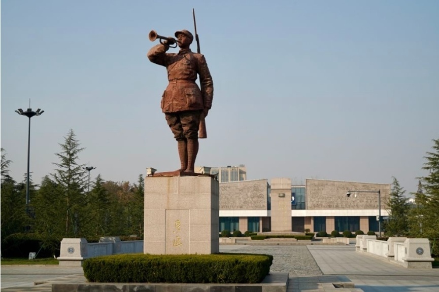 新四軍紀(jì)念館廣場上的新四軍雕像。(新華社記者 李博 攝)