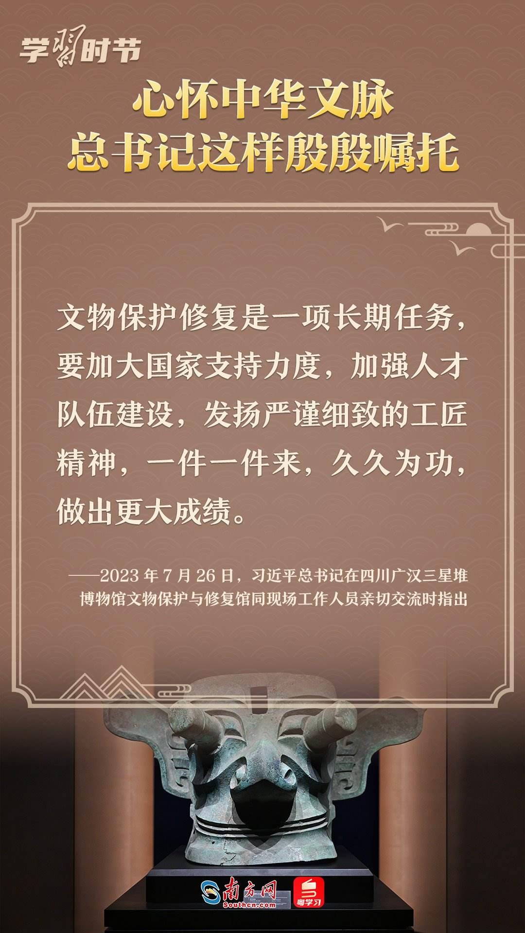 習(xí)近平總書記強(qiáng)調(diào),只有全面深入了解中華文明的歷史,才能更有效地推動中華優(yōu)秀傳統(tǒng)文化創(chuàng)造性轉(zhuǎn)化、創(chuàng)新性發(fā)展,更有力地推進(jìn)中國特色社會主義文化建設(shè),建設(shè)中華民族現(xiàn)代文明。回望2023,總書記多次就中華文化傳承發(fā)展作出重要闡述。讓我們一起學(xué)習(xí),一同賡續(xù)歷史文脈、譜寫當(dāng)代華章。