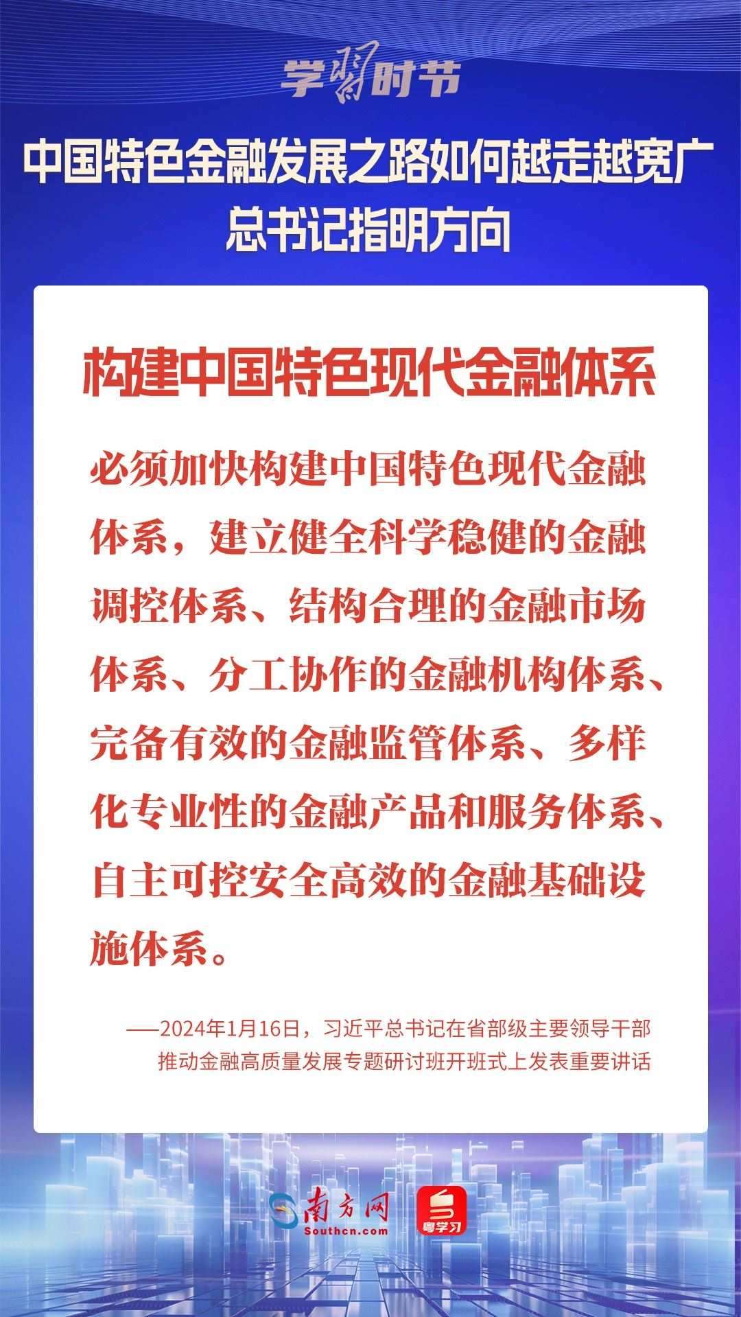 1月16日,中共中央總書記、國家主席、中央軍委主席習近平在省部級主要領導干部推動金融高質(zhì)量發(fā)展專題研討班開班式上發(fā)表重要講話,為中國特色金融發(fā)展之路指明方向。