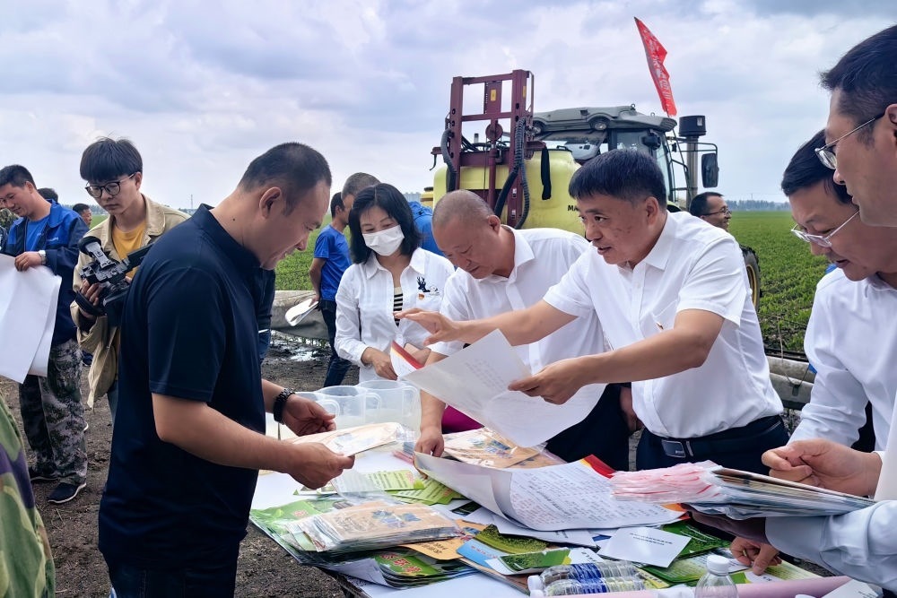 黑龍江省農(nóng)業(yè)農(nóng)村廳種植業(yè)管理處工作人員在哈爾濱市雙城區(qū)地頭,向農(nóng)民發(fā)放科學(xué)用農(nóng)藥資料(2023年6月11日攝)。學(xué)習(xí)貫徹習(xí)近平新時(shí)代中國(guó)特色社會(huì)主義思想主題教育工作會(huì)議召開以來(lái),黑龍江省農(nóng)業(yè)農(nóng)村廳種植業(yè)管理處將理論學(xué)習(xí)與實(shí)際工作相結(jié)合,深入“田間地頭”調(diào)查研究、深入推進(jìn)“千萬(wàn)噸糧食增產(chǎn)計(jì)劃”,助力黑龍江省當(dāng)好維護(hù)國(guó)家糧食安全“壓艙石”,將主題教育成果融入到維護(hù)國(guó)家糧食安全的具體實(shí)踐中。新華社發(fā)