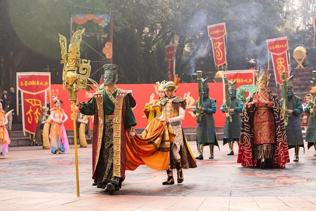 大年初一,三星堆博物館的古蜀祭祀巡游活動。(三星堆博物館供圖)