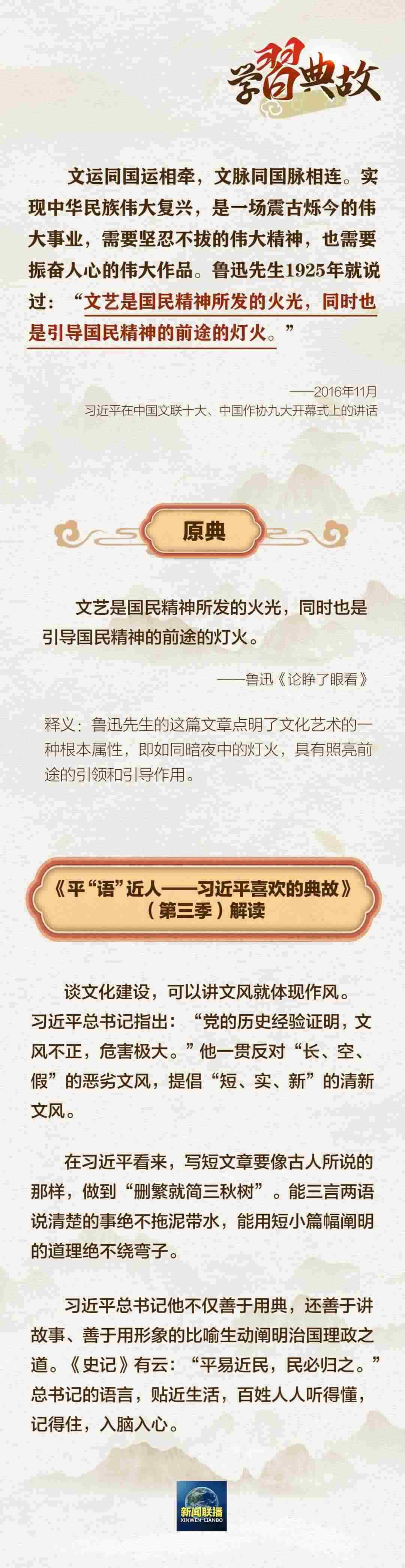 文運同國運相牽,文脈同國脈相連。文化自信是一個國家、一個民族發(fā)展中,最基本、最深沉、最持久的力量。黨的二十大報告中指出:“全面建設(shè)社會主義現(xiàn)代化國家,必須堅持中國特色社會主義文化發(fā)展道路?!眹@“文化建設(shè)”這一主題,總書記曾講到哪些典故?一起學習↓↓↓