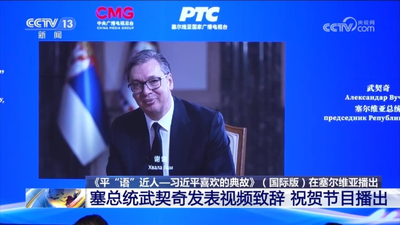 央視網(wǎng)消息:在中國國家主席習(xí)近平對塞爾維亞進(jìn)行國事訪問之際,當(dāng)?shù)貢r(shí)間5月7日,由中國中央廣播電視總臺制作的《平“語”近人——習(xí)近平喜歡的典故》(國際版)在貝爾格萊德上線播出。塞爾維亞總統(tǒng)武契奇向活動(dòng)視頻致辭,祝賀節(jié)目在塞爾維亞播出。