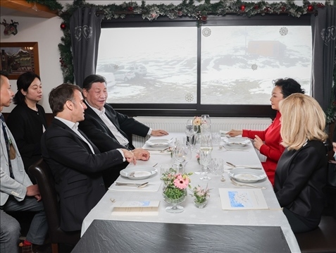 前一天,雙方發(fā)表4份聯(lián)合聲明,簽署綠色發(fā)展、航空、農(nóng)業(yè)食品、商務(wù)、人文等領(lǐng)域近20項(xiàng)雙邊合作文件。此時(shí)在春雪紛飛、云海浩渺中,兩國(guó)元首“不打領(lǐng)帶”溝通交流,加深彼此理解。此情此景,與兩國(guó)元首2019年的“尼斯夜談”、“豫園茶敘”,2023年的“松園會(huì)晤”,一脈相承。