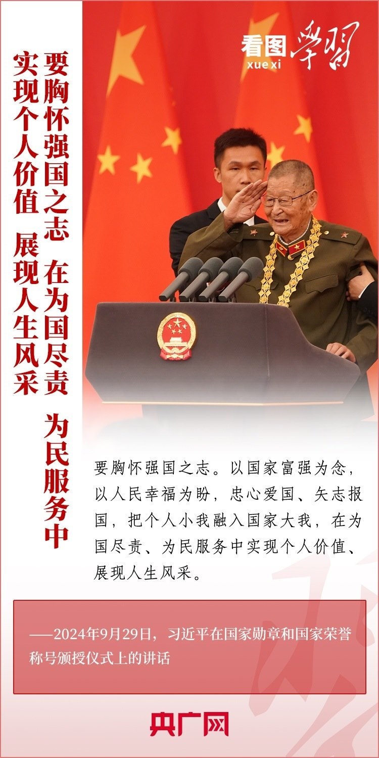 9月29日,中華人民共和國國家勛章和國家榮譽(yù)稱號頒授儀式在北京舉行,習(xí)近平總書記向國家勛章和國家榮譽(yù)稱號獲得者頒授勛章獎?wù)虏l(fā)表重要講話。總書記強(qiáng)調(diào),全黨全國各族人民要以英雄模范為榜樣,團(tuán)結(jié)奮進(jìn)、砥礪前行,匯聚起共襄強(qiáng)國盛舉的磅礴力量。一起來學(xué)習(xí)!