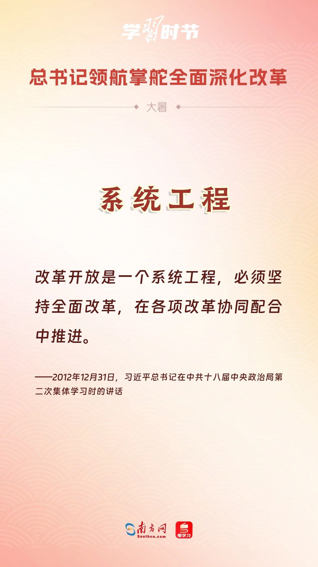 黨的十八大以來,習(xí)近平總書記親自領(lǐng)導(dǎo)、親自部署、親自推動全面深化改革工作,推動全面深化改革事業(yè)在攻堅克難中不斷邁上新臺階、取得新勝利。在驕陽似火的大暑時節(jié),通過一組海報,讓我們共同學(xué)習(xí)習(xí)近平總書記關(guān)于“全面深化改革”的重要論述。