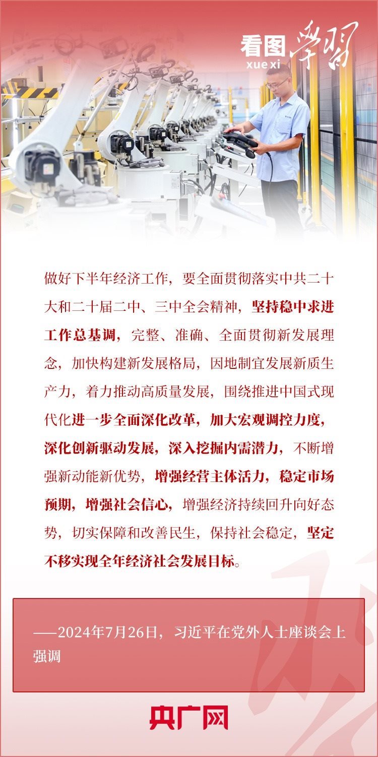 中共中央7月26日在中南海召開(kāi)黨外人士座談會(huì),就當(dāng)前經(jīng)濟(jì)形勢(shì)和下半年經(jīng)濟(jì)工作聽(tīng)取各民主黨派中央、全國(guó)工商聯(lián)負(fù)責(zé)人和無(wú)黨派人士代表的意見(jiàn)和建議。習(xí)近平總書記主持座談會(huì)并發(fā)表重要講話,對(duì)做好下半年經(jīng)濟(jì)工作作出重要部署,并對(duì)黨外人士提出3點(diǎn)希望。一起來(lái)學(xué)習(xí)!