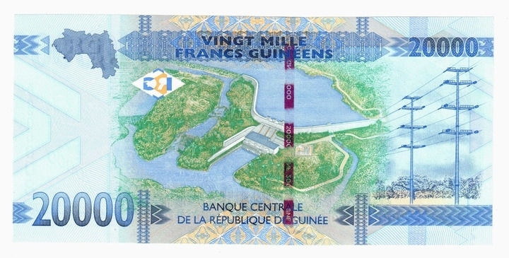 這是印有幾內(nèi)亞凱樂塔水電站效果圖的面值2萬(wàn)幾內(nèi)亞法郎的紙幣。新華社發(fā)