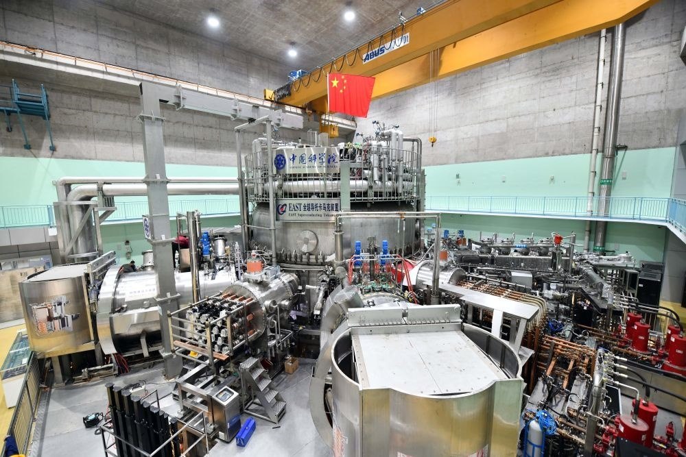 這是在安徽合肥科學(xué)島拍攝的“人造太陽”——全超導(dǎo)托卡馬克核聚變實(shí)驗(yàn)裝置(EAST)(2021年4月13日攝)。