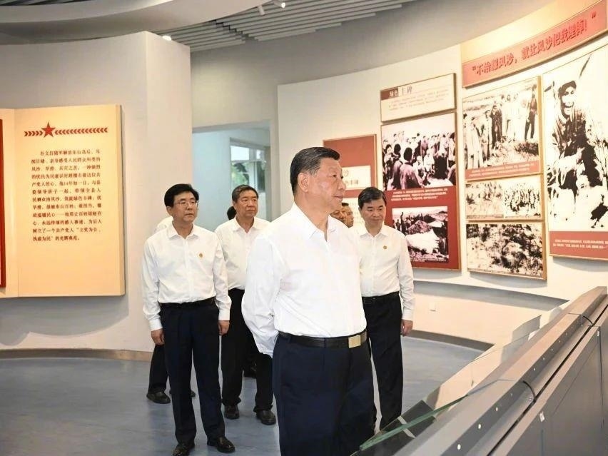 10月15日下午,習(xí)近平總書記在福建省漳州市東山縣,考察了谷文昌紀(jì)念館,了解當(dāng)?shù)貍鞒屑t色基因等情況。
