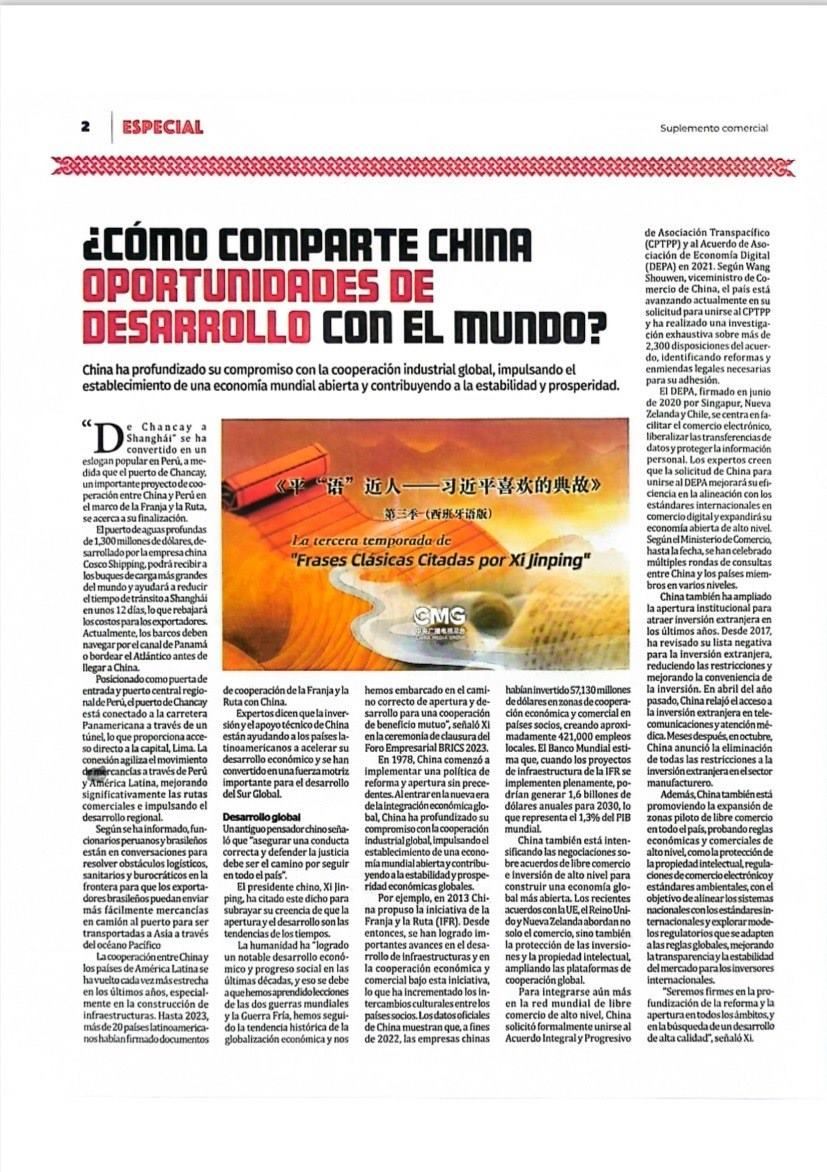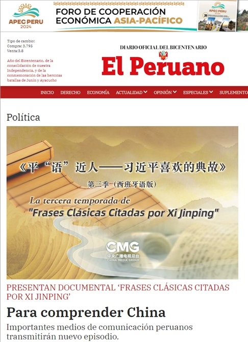 △《秘魯人報(bào)》刊發(fā)文章《<平“語(yǔ)”近人>專(zhuān)題片播出 更好地了解中國(guó)——秘魯各大媒體播出新一季片集》