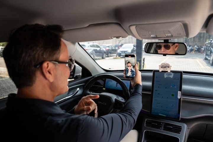 2024年9月2日,巴西網(wǎng)紅費(fèi)利佩·費(fèi)拉在里約熱內(nèi)盧的汽車(chē)改裝店中錄制視頻。費(fèi)拉是一名粉絲超過(guò)400萬(wàn)、專(zhuān)門(mén)做汽車(chē)銷(xiāo)售和改裝的網(wǎng)紅,由于他經(jīng)常推薦純電動(dòng)或者混合動(dòng)力新款車(chē)型,也被稱(chēng)為巴西新能源車(chē)“民間大使”。每逢周末,費(fèi)拉都會(huì)受邀去各品牌的4S店,包括中國(guó)品牌比亞迪在內(nèi)的多家在巴車(chē)企都與他簽約,在門(mén)店開(kāi)業(yè)或新車(chē)型上市時(shí)邀請(qǐng)他出席。新華社記者 王天聰 攝
