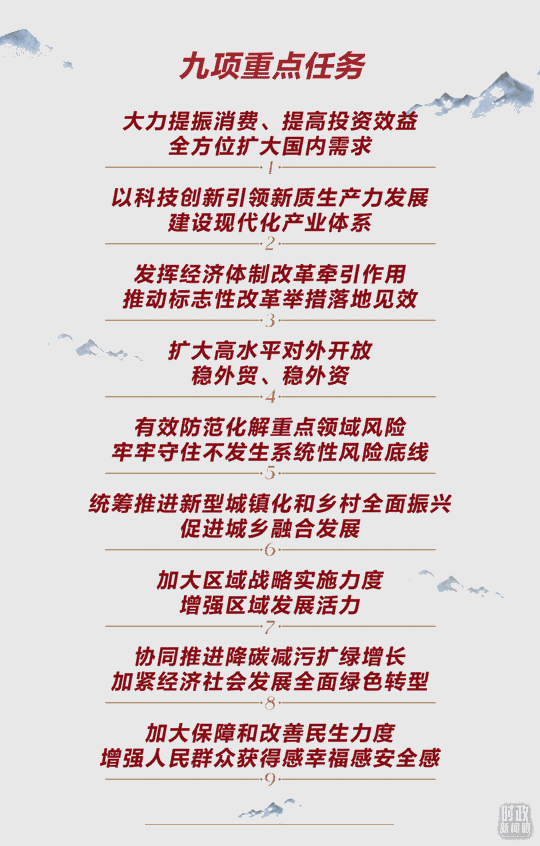 今年的中央經(jīng)濟(jì)工作會(huì)議確定,2025年要抓好9項(xiàng)重點(diǎn)任務(wù)。