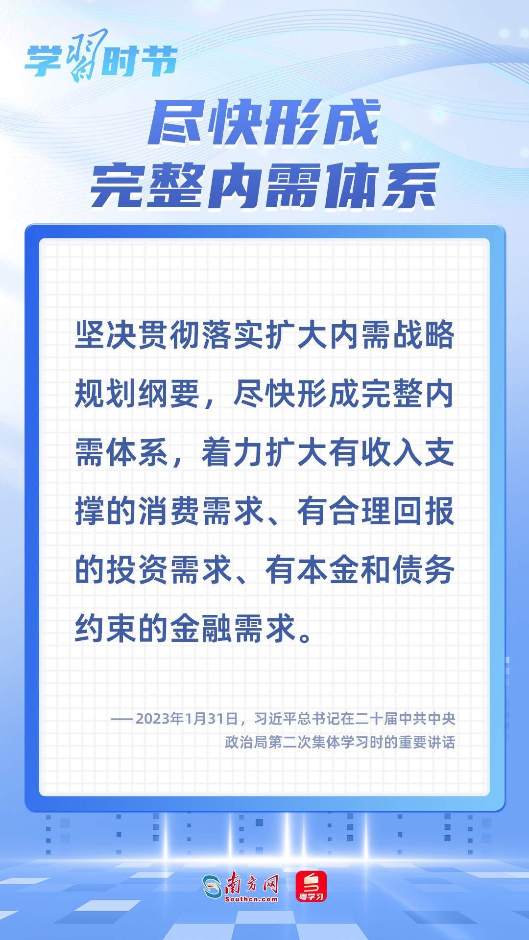 內(nèi)需是經(jīng)濟(jì)發(fā)展的基本動(dòng)力,實(shí)施擴(kuò)大內(nèi)需戰(zhàn)略,是保持我國經(jīng)濟(jì)長期持續(xù)健康發(fā)展的需要。習(xí)近平總書記多次在不同場(chǎng)合就擴(kuò)大國內(nèi)需求作出一系列重要論述和重要部署,讓我們一起學(xué)習(xí)。