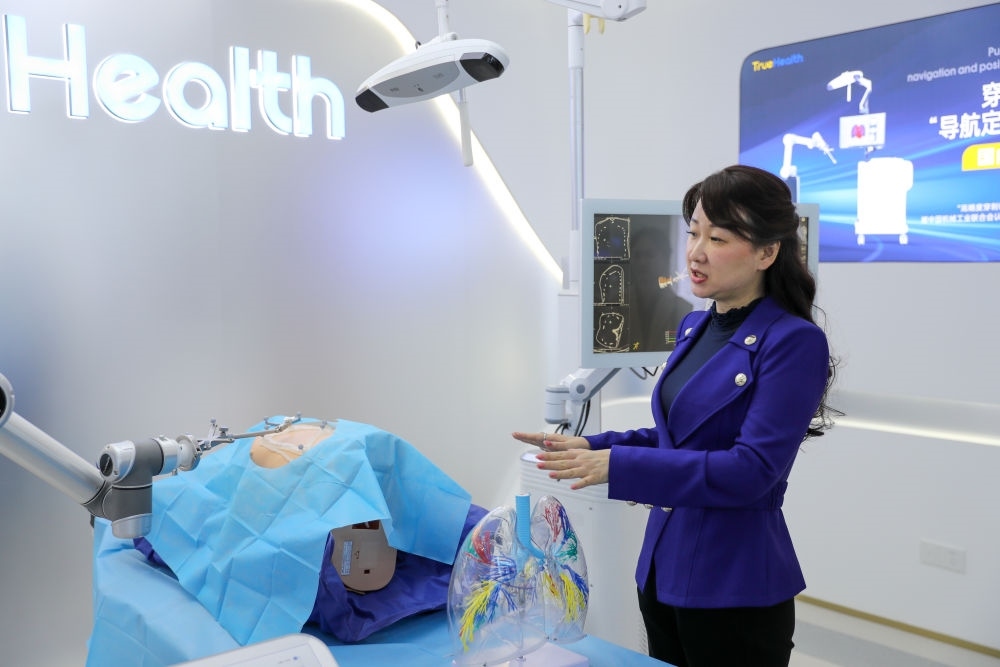2024年11月24日,在橫琴澳門青年創(chuàng)業(yè)谷,澳門青年介紹“穿刺手術(shù)導航定位系統(tǒng)”。