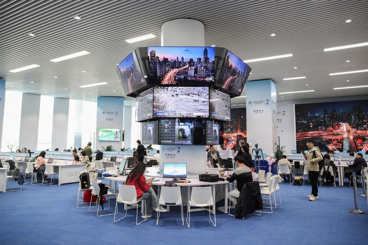 2024年11月8日,媒體記者在第七屆進博會新聞中心工作。新華社發(fā)(常能嘉 攝)