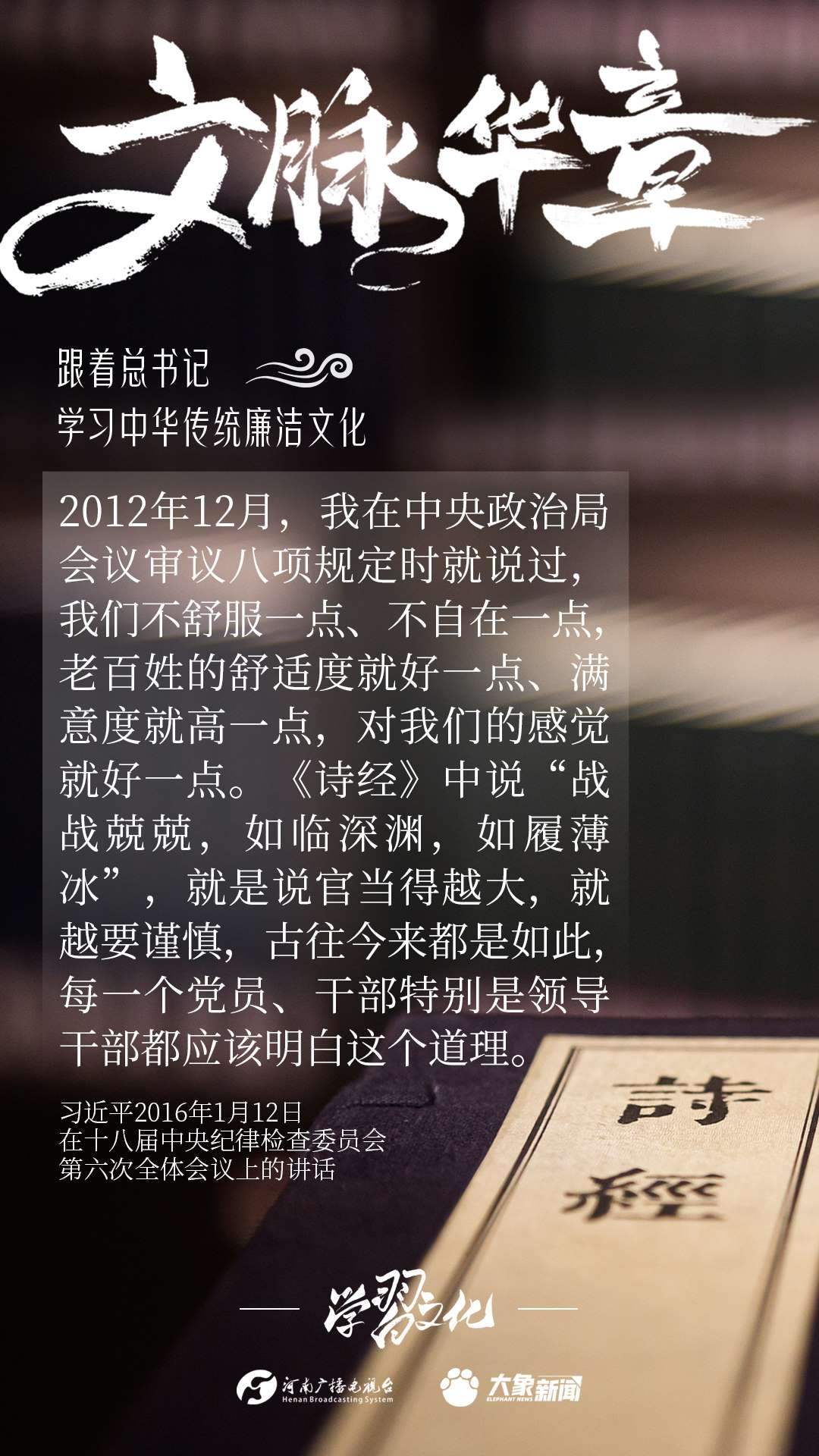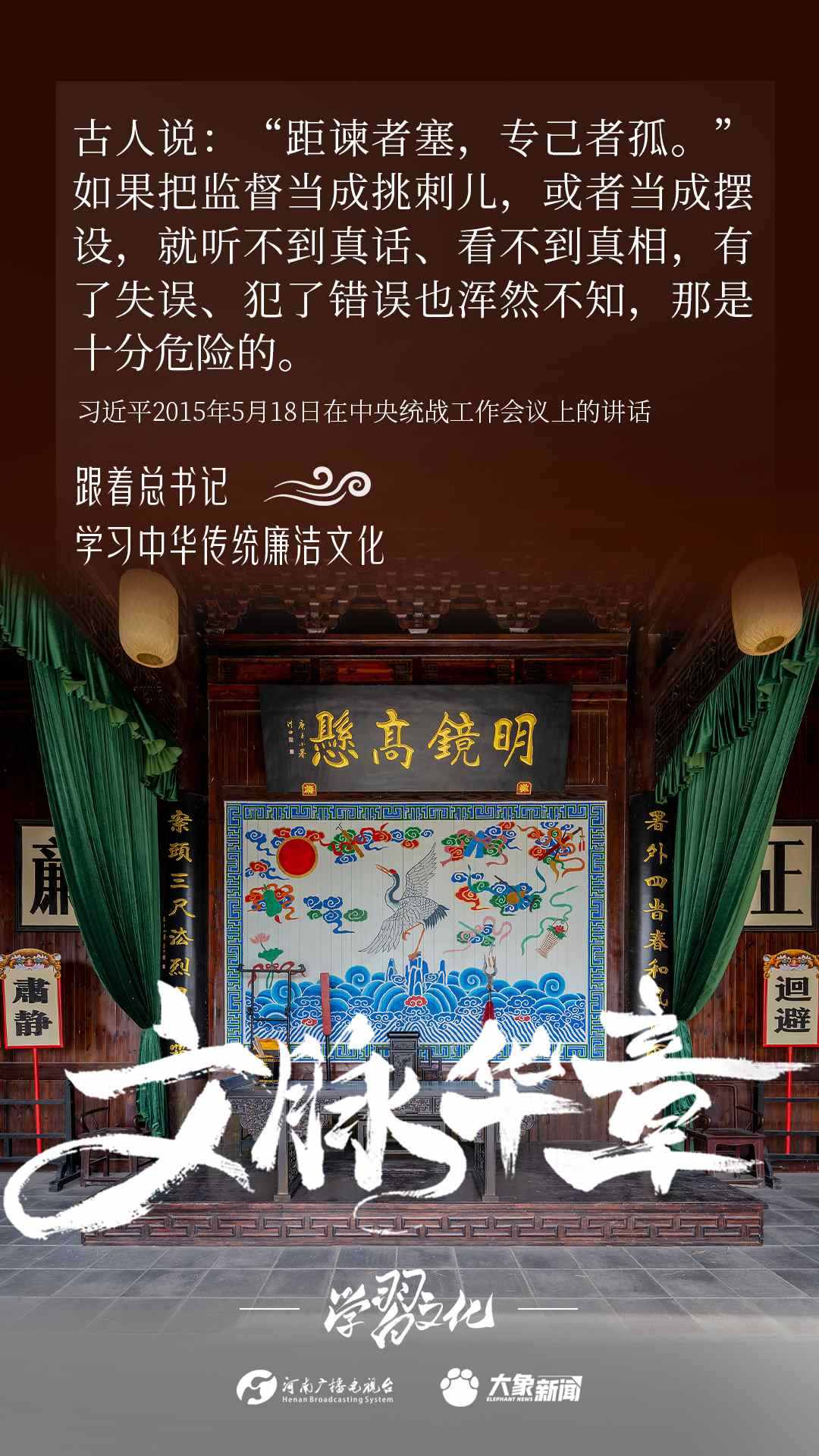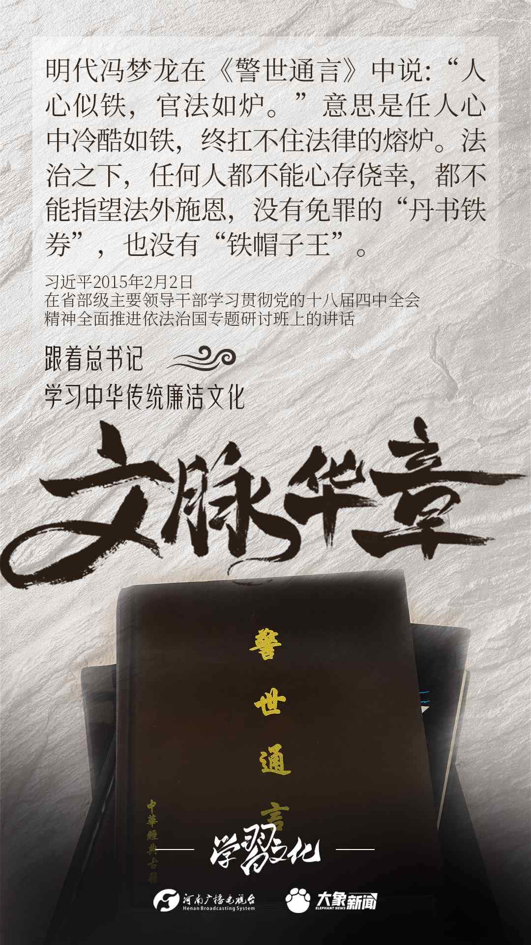 中華優(yōu)秀傳統(tǒng)文化蘊(yùn)含著豐富的廉潔文化,習(xí)近平總書記曾指出:沒(méi)有中華優(yōu)秀傳統(tǒng)文化、革命文化、社會(huì)主義先進(jìn)文化的底蘊(yùn)和滋養(yǎng),信仰信念就難以深沉而執(zhí)著??倳洺3R?jīng)據(jù)典,教育引導(dǎo)廣大黨員干部正心修身,涵養(yǎng)文化,守住為政之本。大象新聞分五期為您梳理,我們一起跟著總書記學(xué)習(xí)中華傳統(tǒng)廉潔文化。今天推出第四期。