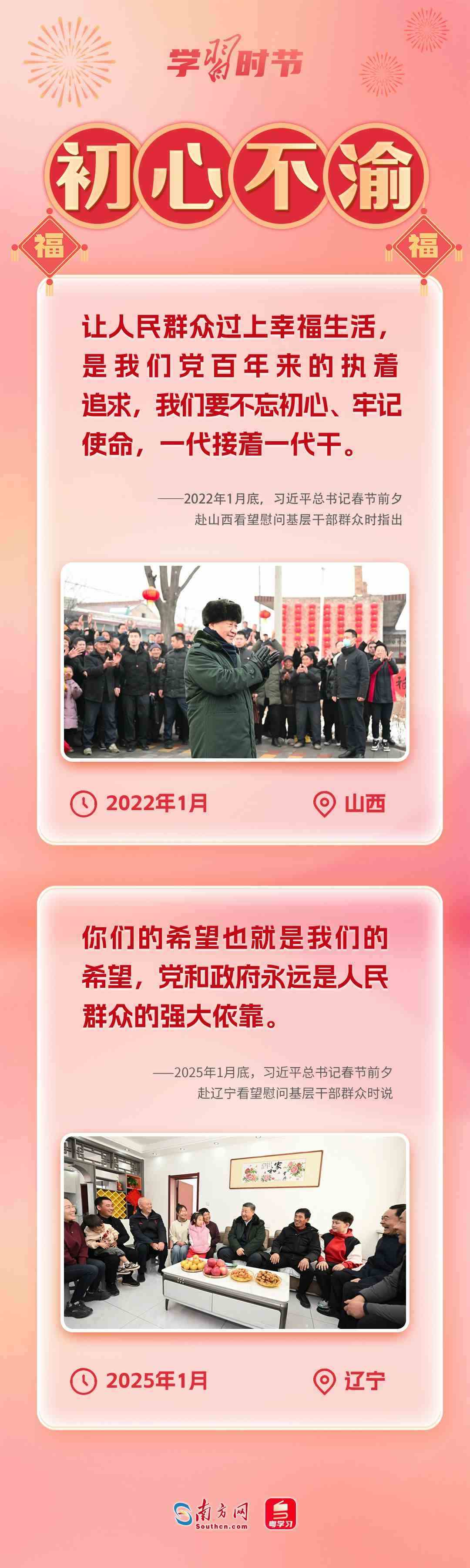 春節(jié)即將到來,1月22日至24日,習(xí)近平總書記來到遼寧給基層干部群眾送上黨中央的關(guān)懷和祝福。黨的十八大以來,每逢春節(jié)前夕,習(xí)近平總書記都要抽出時(shí)間,深入基層,同老百姓一起聊家常,關(guān)心大家的柴米油鹽、衣食住行、生活冷暖等具體“小事”。