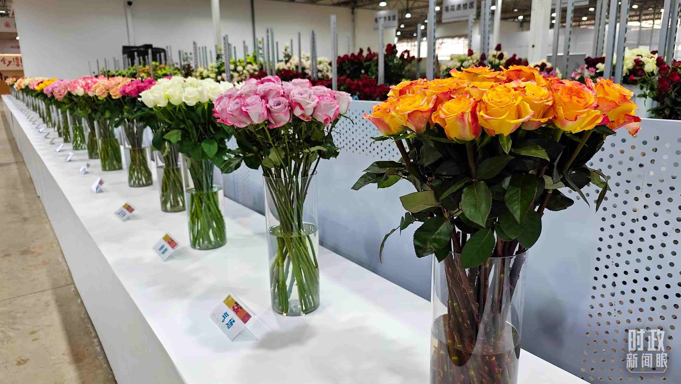 △展廳里展示的鮮花品種。(總臺(tái)央視記者趙東辰拍攝)