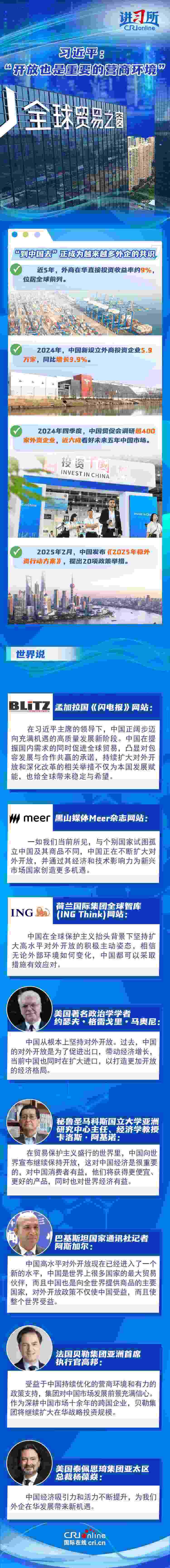 “中國(guó)開放的大門不會(huì)關(guān)閉,只會(huì)越開越大?!比ツ?2月,中國(guó)將“擴(kuò)大高水平對(duì)外開放,穩(wěn)外貿(mào)、穩(wěn)外資”列為今年政府重點(diǎn)任務(wù)。新年以來(lái),隨著政策紅利持續(xù)釋放,外資不斷用行動(dòng)為中國(guó)投下“信心票”:德國(guó)光電行業(yè)巨頭蔡司宣布將在上海購(gòu)地自建大中華區(qū)總部園區(qū),意大利百旺集團(tuán)亞洲總部暨新工廠在蘇州高新區(qū)開業(yè),日本豐田汽車決定在華獨(dú)資設(shè)立雷克薩斯純電動(dòng)汽車及電池的研發(fā)和生產(chǎn)公司……在他們看來(lái),中國(guó)持續(xù)優(yōu)化營(yíng)商環(huán)境、擴(kuò)大高水平開放,經(jīng)濟(jì)吸引力和活力不斷提升,不僅為中國(guó)發(fā)展賦能,也給全球帶來(lái)穩(wěn)定與希望。