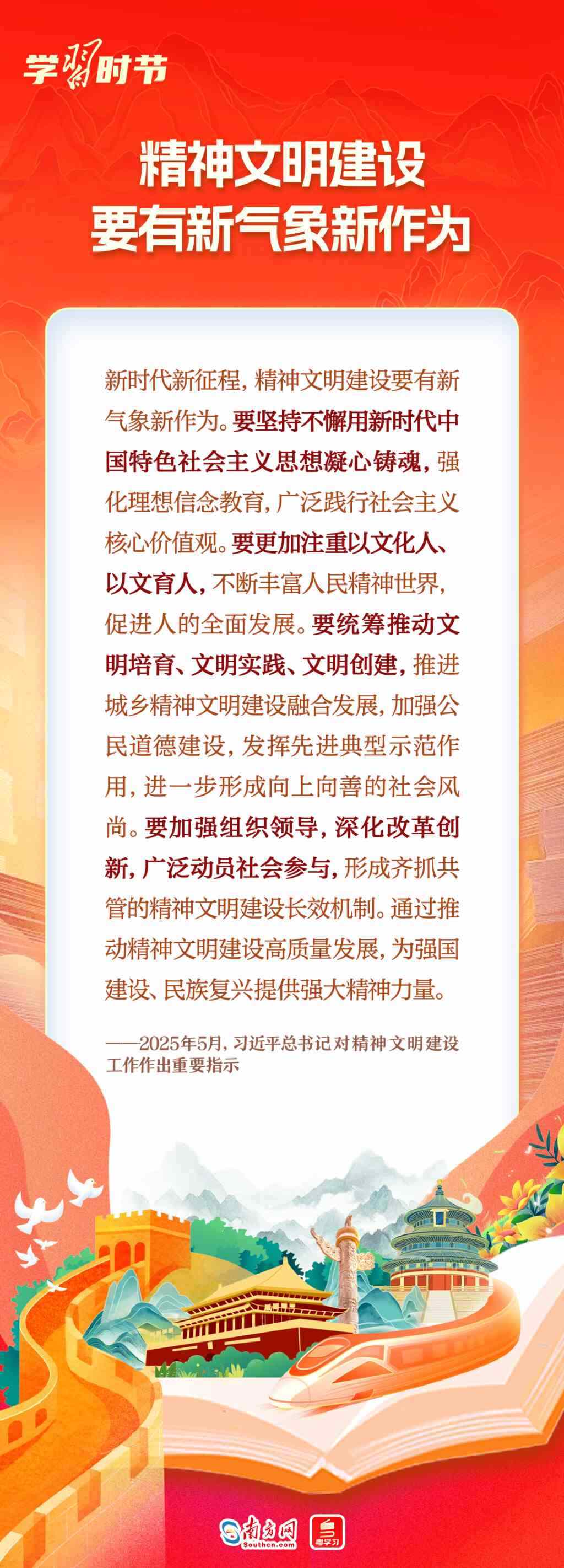 5月23日,2025年全國(guó)精神文明建設(shè)表彰大會(huì)召開,會(huì)上傳達(dá)了習(xí)近平總書記對(duì)精神文明建設(shè)工作作出的重要指示。習(xí)近平總書記對(duì)精神文明建設(shè)工作有哪些最新指示?一起來學(xué)習(xí)!