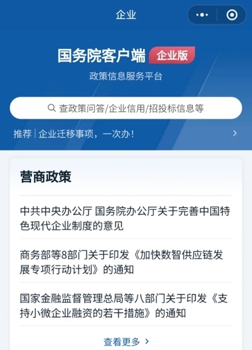 “國務(wù)院客戶端小程序企業(yè)版”