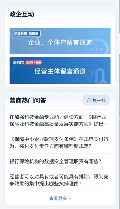 還有“政企互動”和“營商熱門問答”,