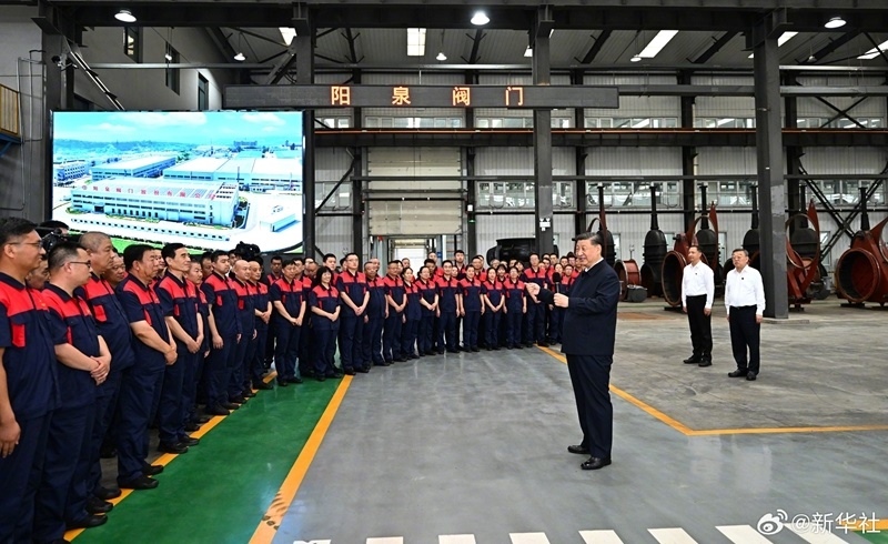 7日下午,習(xí)近平總書記在陽泉閥門股份有限公司考察。他察看企業(yè)生產(chǎn)車間和產(chǎn)品展示,同現(xiàn)場工人親切交談,了解山西加快產(chǎn)業(yè)轉(zhuǎn)型升級、推動高質(zhì)量發(fā)展等情況。(文字記者:張曉松、朱基釵;攝影記者:謝環(huán)馳、燕雁、翟健嵐)