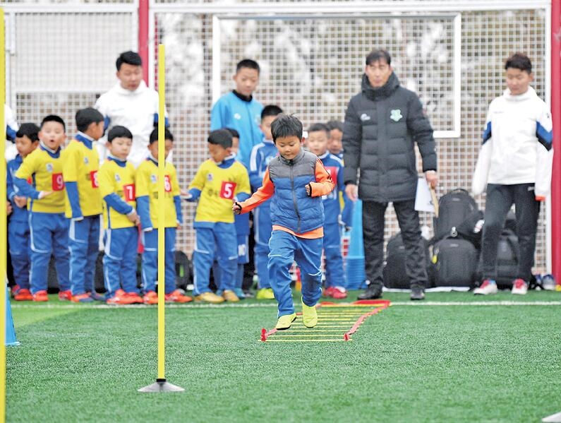連續(xù)兩天的雨雪天氣沒有澆熄孩子們的熱情,球場(chǎng)上一群六七歲的小朋友努力奔跑著。日前,在呼和浩特市賽罕區(qū)全民健身中心、新城區(qū)成吉思汗街小學(xué)、玉泉區(qū)通順街小學(xué)、賽罕區(qū)騰飛路小學(xué)4個(gè)地點(diǎn)進(jìn)行了呼和浩特市2011—2012年齡段男子足球隊(duì)員的選拔。孩子們雖然動(dòng)作稚嫩、但個(gè)個(gè)都表情認(rèn)真,全力以赴地進(jìn)行著測(cè)試。