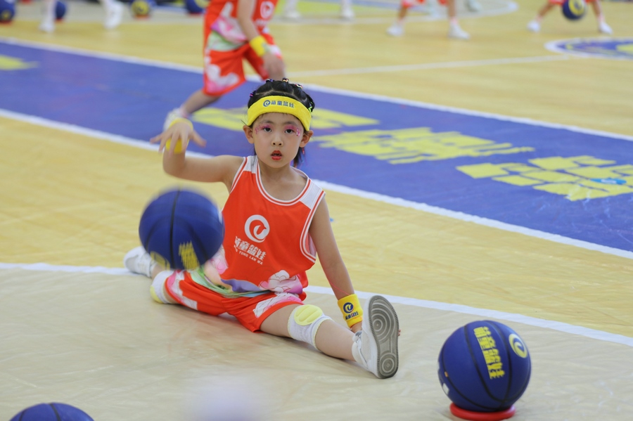 幾圈過后,汗水已經(jīng)打濕了金銘銘的外套,她甩甩頭上的汗,過來跟記者打招呼。