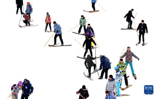 這是人們在阿勒泰市將軍山滑雪場參加毛皮滑雪慶?;顒?2019年1月16日攝)。新華社記者 沙達提 攝