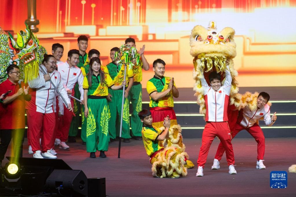伴隨著恢宏動(dòng)感的音樂旋律,無(wú)數(shù)熒光棒在坐席上不斷變幻出倒計(jì)時(shí)的數(shù)字和雪花的圖案,酷炫的視頻動(dòng)畫投射在晶瑩剔透的冰面,一幅科技感十足的冬日畫卷躍然紙上。