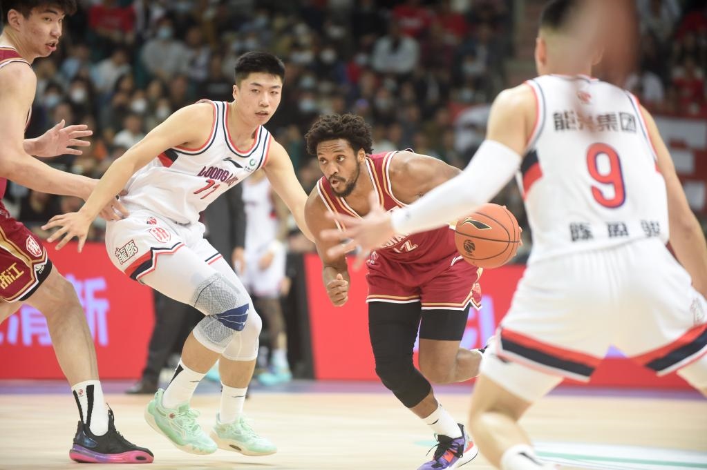 3月13日,浙江隊球員蓋利(右二)在比賽中帶球突破。新華社記者盧漢欣攝