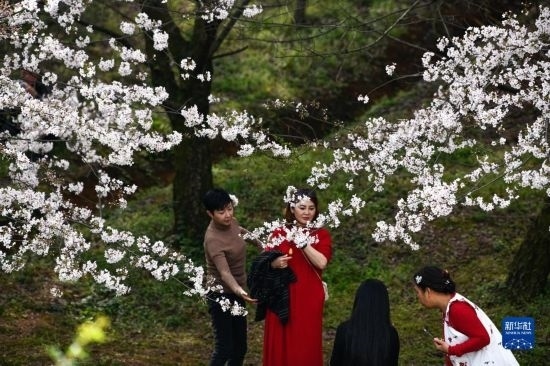 近日,貴州省貴安新區(qū)櫻花園內(nèi)的2.4萬畝櫻花競相綻放,如雪似霞,吸引游客前來賞花觀光。
