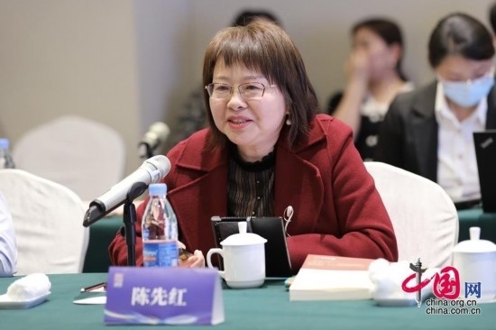 華中科技大學(xué)中國故事創(chuàng)意傳播研究院院長陳先紅作主題演講。中國網(wǎng) 夢(mèng)恬 攝